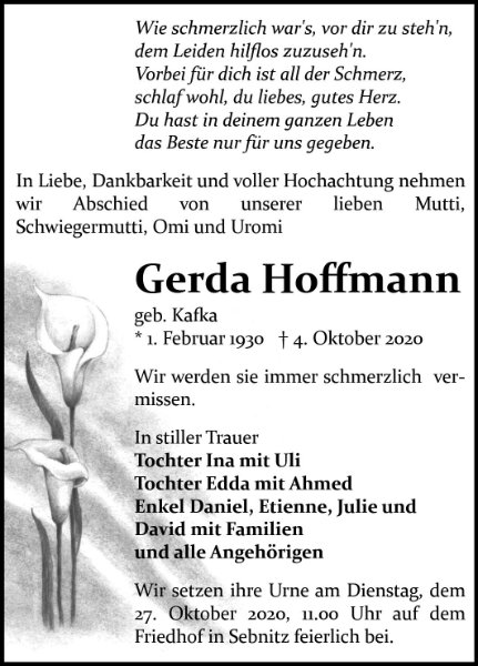 Gerda Hoffmanngestorben am 4. Oktober 2020