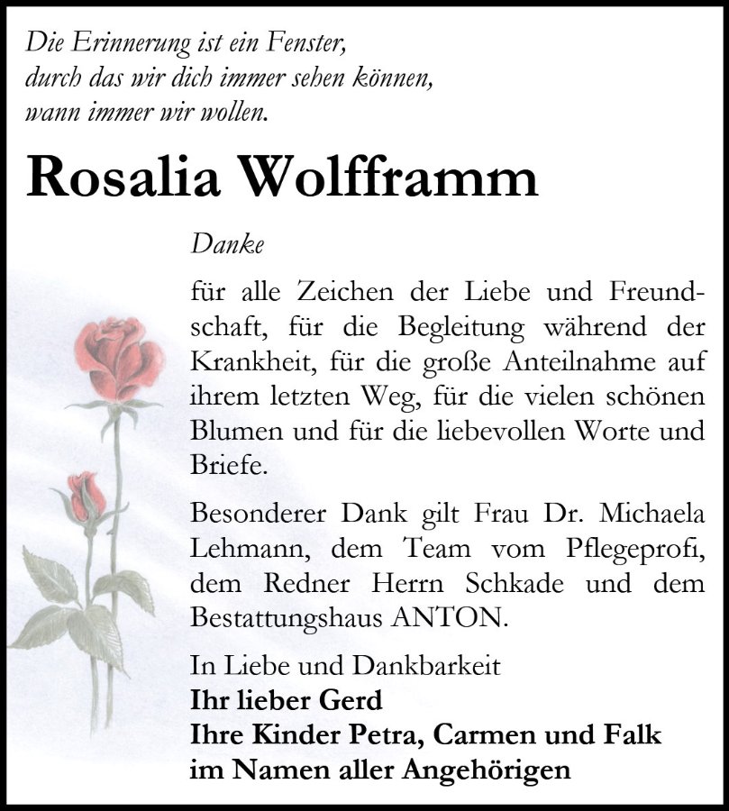 Rosalia Wolfframmgestorben am 13. Oktober 2024